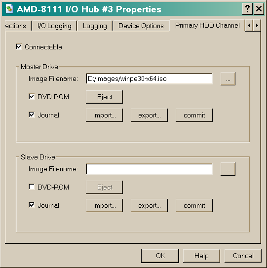 Optionally, setup a boot cd-rom, floppy, or hard disk image: