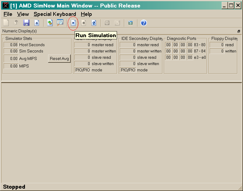 To test the bios, download and install AMD's simnow. This example uses version simnow-win64-4.6.2pub.exe. (note, simnow requires a 64-bit operation system). Add an environment variable named simnow that points to the directory where simnow is installed: