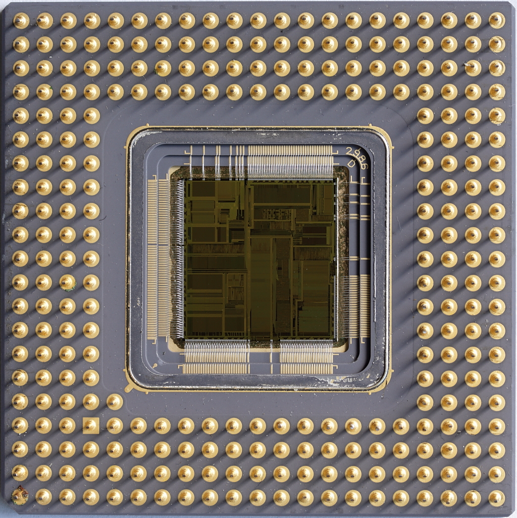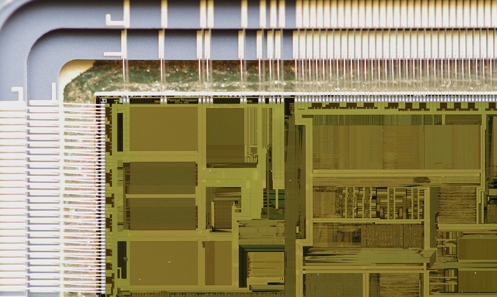 Pentium P5 die text closeup. This may be the best view possible using