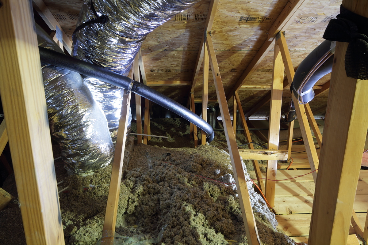 The new Viega piping runs through the attic.